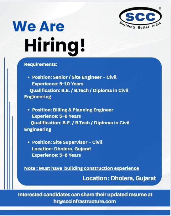 LATEST INFRASTRUCTURE & CONSTRUCTION JOBS UPDATE IN INDIA